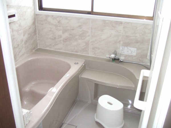 完成です。ノーリツのグラシオのバスです。出窓を工夫して0.75坪から約1坪の空間が出来、広く寒々しくない浴室に変わりました。
