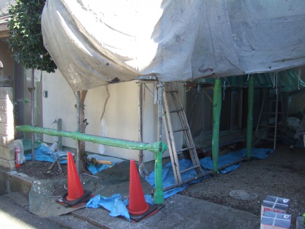 足場掛け完了です。