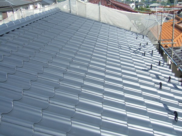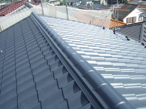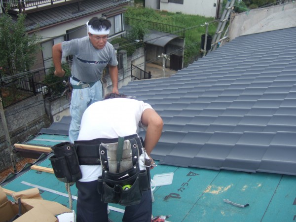 金属瓦を葺いていきます。